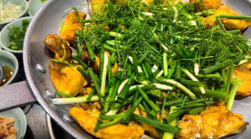 68 Cha Ca La Vong Wie in Hanoi: Gebratener Lachsfilet mit Kurkuma, Dill, Frühlingszwiebeln, serviert mit Reisnudeln und Salat 19,90€